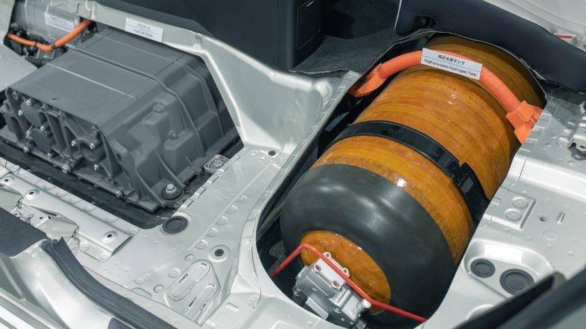 MIRAIの水素タンクを覆う橙色の塊。これは炭素繊維を強化してつくった「CFRP」と呼ばれる合成樹脂です。カーボンファイバーよりも強度が高く、タンク内で発生する水素の高圧力を受け止め、筐体を守るために絶好の材料になります。もちろんCFRPは画一的に仕様が決まっているものではなく、用途や環境に応じた原料の調合が必要です。原料の調合、試作、分析がひとつのサイクルになるのですが、1回で完了することはまずありません。試作を通じて改善を積み重ね、やっと納得できる品質にたどり着くものです。しかし、これを人だけで行うとしたら、どれだけ早くても2ヶ月はかかります。クルマの開発において足かせになるのは確実。そこで今回、私が導入したのは、計算科学などのシミュレーションや機械学習を用いた材料開発技術です。簡単に言えば「人の手で行っていたものを、コンピュータ上でできるようにする」というもの。前職でも専門分野だったので、技術とノウハウには少なからず自信がありました。粒子、分子、さらには原子材料のミクロ構造レベルまで落とし込んだシミュレーションは、前職の材料メーカーだからこそ確立できた技術ですから。この方法を導入した結果、強度の高いCFRP材料を、試作では到底実現できないスピードで提案することができました。前職の経験が大いに活きたことを実感できて嬉しかったですね。