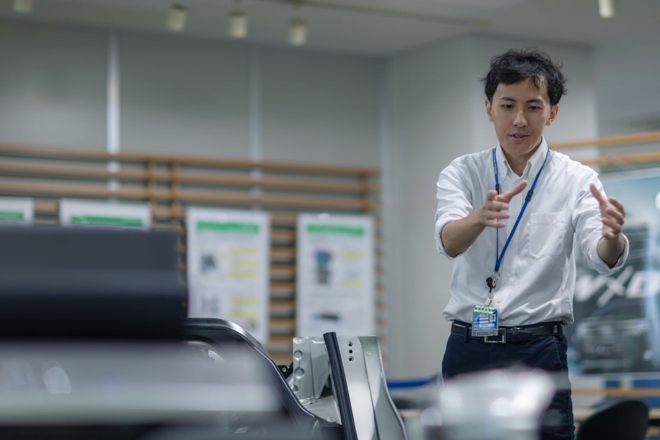 未来のクルマを創造するための先端研究や先行開発、そこで生まれた技術を製品に仕立てる製品開発を担当しています。自分たちが新しい未来を想像して描く。常に新しいものを考えて生み出す難しさと魅力がここにはあります。