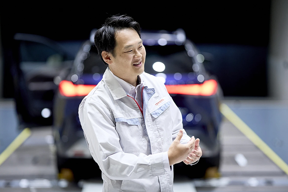 2011年の入社以来、空気力学(空力)を軸にキャリアを歩んできた土岐 武也。現在はBEV(バッテリー電気自動車)における空力・風切音の性能開発に携わり、「デザイン性を維持しながら、いかに空気抵抗が少なく静寂性の高いクルマをつくるか」に取り組んでいます。土岐が語る、仕事のやりがいとトヨタで働く魅力とは?