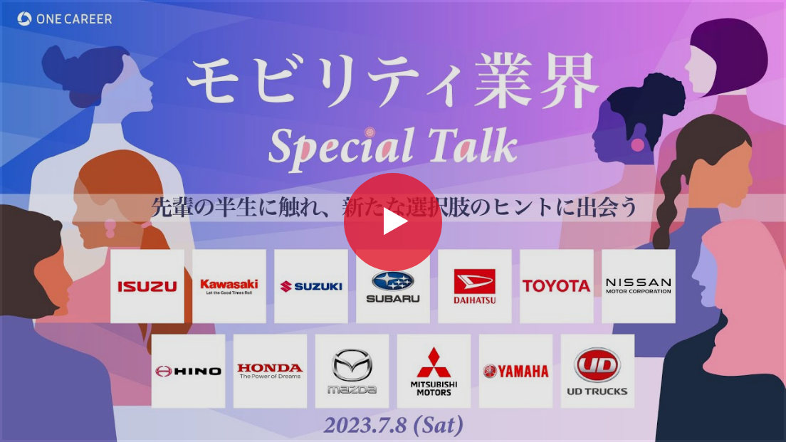 モビリティ業界を代表する13社が出演し、若手の働き方や先輩たちのワークライフバランスの秘話まで語り合います。
