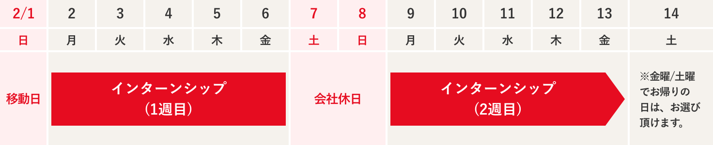 - ※2/1中に、当社が指定する宿泊施設に移動頂きます。