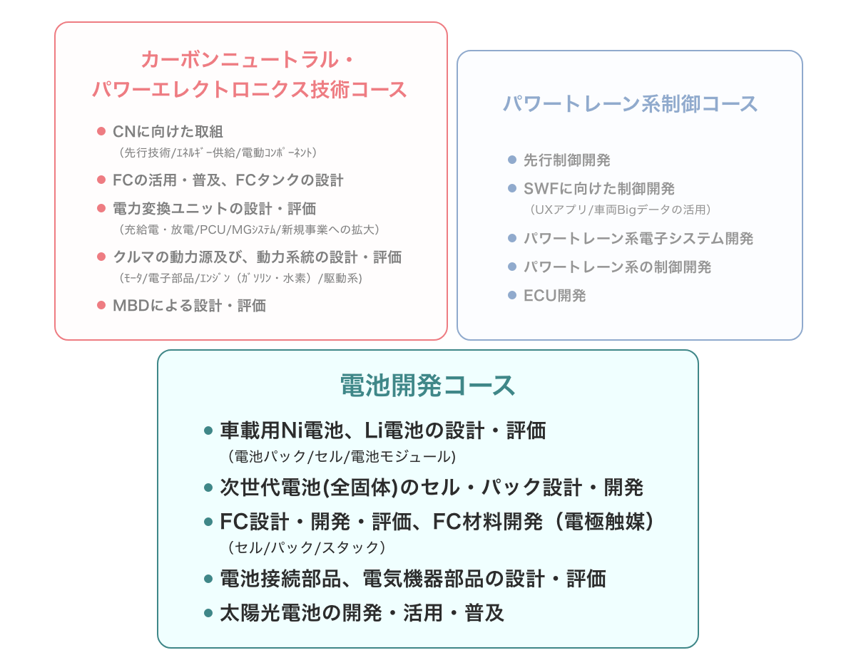 カーボンニュートラルの実現に向け急速に進む車両電動化に対し、 安全・高品質・高性能の電池ユニットを効率的に開発を行っています。